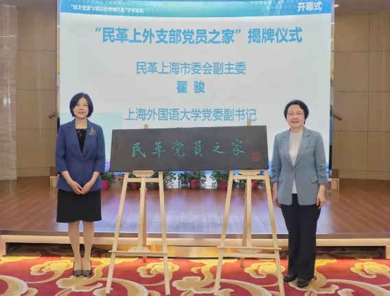 开幕式上,翟骏和张静共同为位于上海外语教育出版社的民革上外支部党员之家揭牌,与会人员共同观看《上外党员之家》视频介绍。