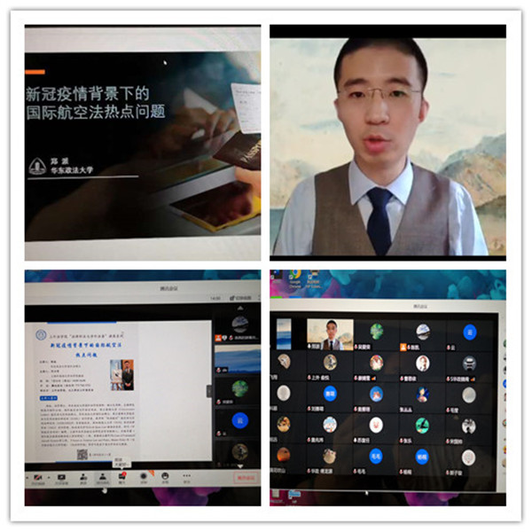 郑派的主要研究领域为国际公法、国际航空法与外层空间法。讲座中,他详细解释了“什么是航空法”,从法理的角度详细解读了1944年签订的《芝加哥公约》,并介绍了《国际卫生公约》43条的重要内容。随后,他从法律的角度解读了目前新冠疫情背景下与国际航空法相关的热点问题,如:意大利停飞往来中国航班,中国“五个一”政策和中美航权纠纷等。讲座深入浅出,法律理论基础扎实,受到了参与者的欢迎。