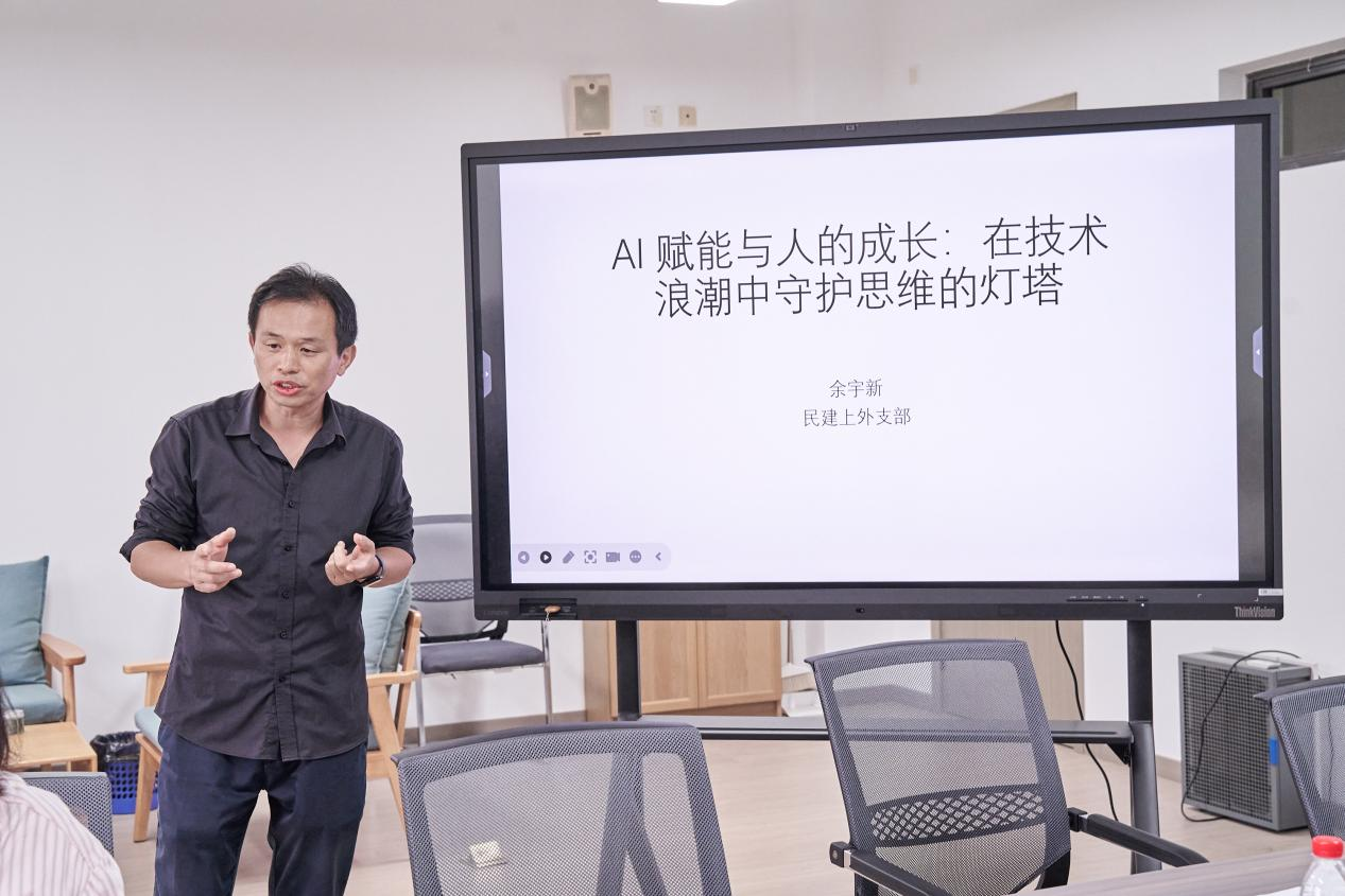 本次读书会邀请民建上外支部副主委、国际金融贸易学院余宇新副教授作“AI赋能与人的成长”专题讲座。余宇新结合前沿学术研究与实践案例,深入剖析了人工智能技术发展对人才培养、个人发展等带来的机遇与挑战,引发了现场听众的广泛共鸣。活动吸引了国际金融贸易学院的多位师生到场旁听,大家围绕会史传承的时代价值、新时代民主党派成员的履职路径等议题,结合自身工作学习经历展开热烈交流、分享思考体会。