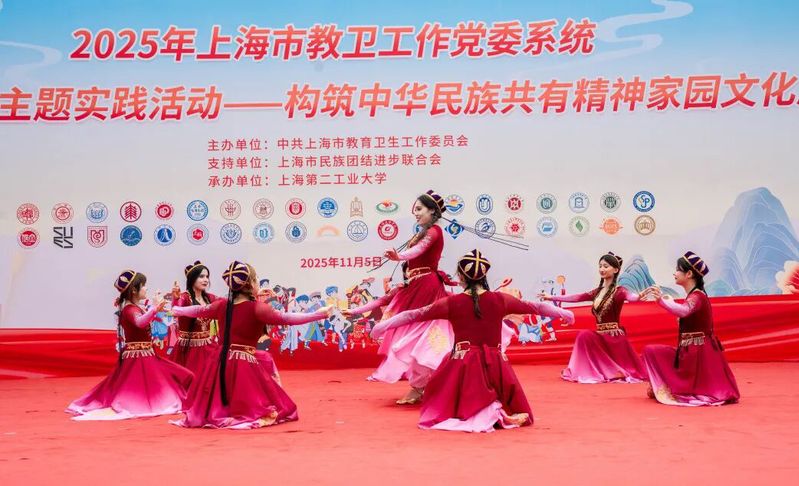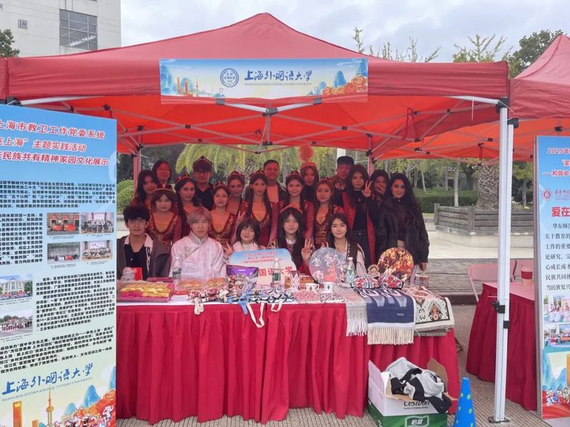2025年11月5日,由上海市教卫工作党委主办、上海市民族团结进步联合会支持的“家在上海”主题实践活动——“构筑中华民族共有精神家园”文化展示在上海第二工业大学举行。来自全市40余所高校的千余名各民族师生齐聚一堂,共叙民族情深,共绘团结画卷。我校党委统战部、学生工作部(处)、“语联华韵”民族团结教育工作室联合组织23名师生代表积极参与活动,全面展现上外在推进民族团结进步教育和校园文化融合方面的丰硕成果。