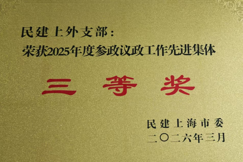 民建上外支部副主委余宇新荣获民建上海市委“2025年度参政议政工作先进个人三等奖”。