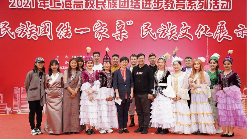 为贯彻落实习近平总书记关于民族工作的重要论述,筑牢中华民族共同体意识,促进高校间民族工作合作,2021年上海高校民族团结进步系列活动开幕式暨“民族团结一家亲”民族文化展示活动于5月19日隆重举行,该活动由上海市教卫工作党委主办,上海第二工业大学承办。我校师生代表参加开幕式节目演出,布置特色文化展示摊位并开展互动游戏,向上海市各高校师生展示上外民族工作风采。我校党委统战部部长刘蓉蓉,学工党委/学生处少数民族专职辅导员阿斯卡尔江·司迪克老师和来自我校各少数民族的学生代表参加了展示活动。