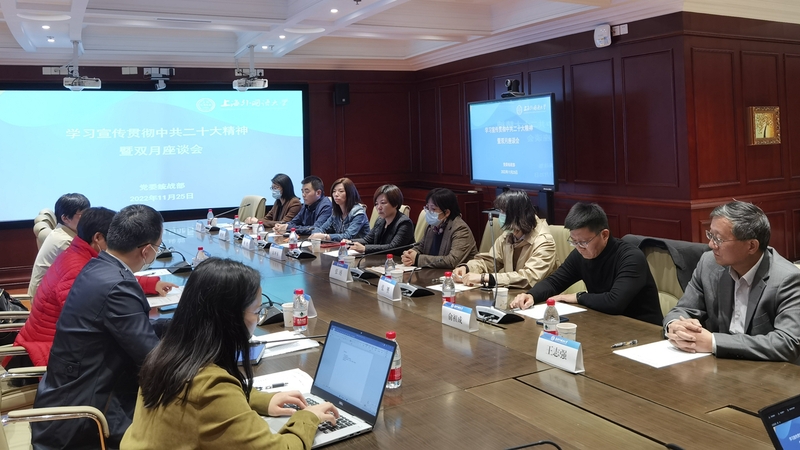 2022年11月25日,党委统战部召开学习宣传贯彻中共二十大精神暨双月座谈会。各民主党派与统战团体主要负责人、无党派人士、党外政协委员等参加座谈。