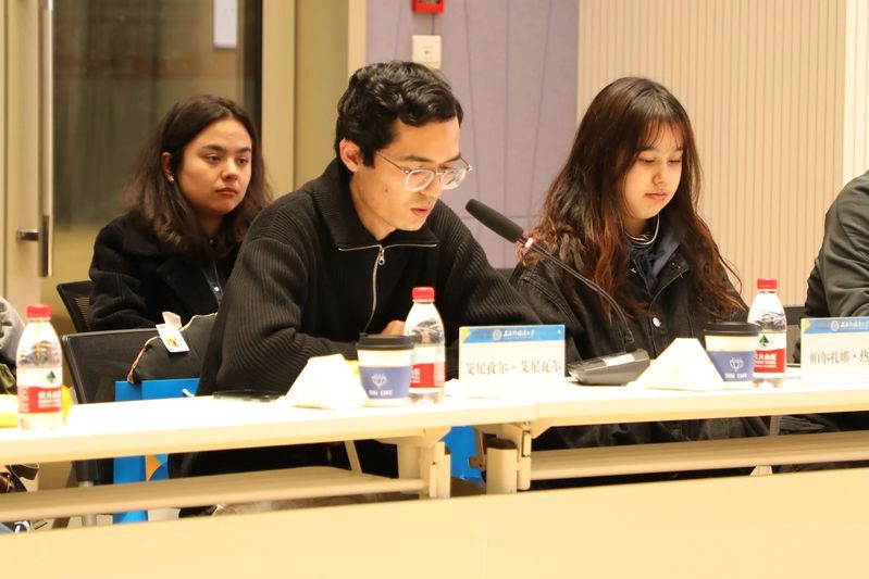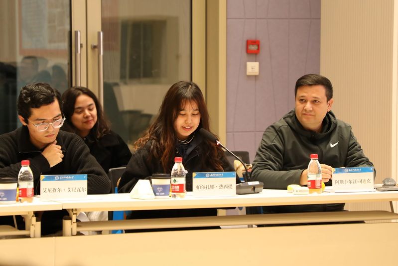 各位同学也畅所欲言,分享交流。来自国际金融贸易学院2022级国际经济与贸易专业的老生代表艾尼孜尔·艾尼瓦尔分享上外学习、生活的成长与感悟,预科阶段和升入本科阶段的励志、温馨、感人故事,表达了对党和国家少数民族政策的认同与感恩。来自国际教育学院2023级预科生代表帕尔扎娜·热西提畅谈入学初的感受和学业规划,表达了对美好未来的期许和信心。