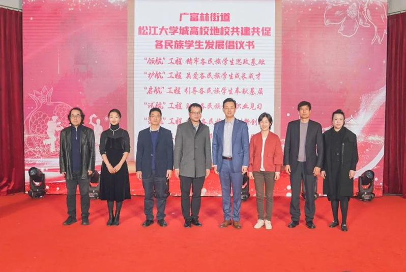 广富林街道、大学城各高校联合发布《松江大学城各民族学生发展倡议书》,搭建高校、地方、企业合作共建平台,帮助高校各民族学生融入松江。
