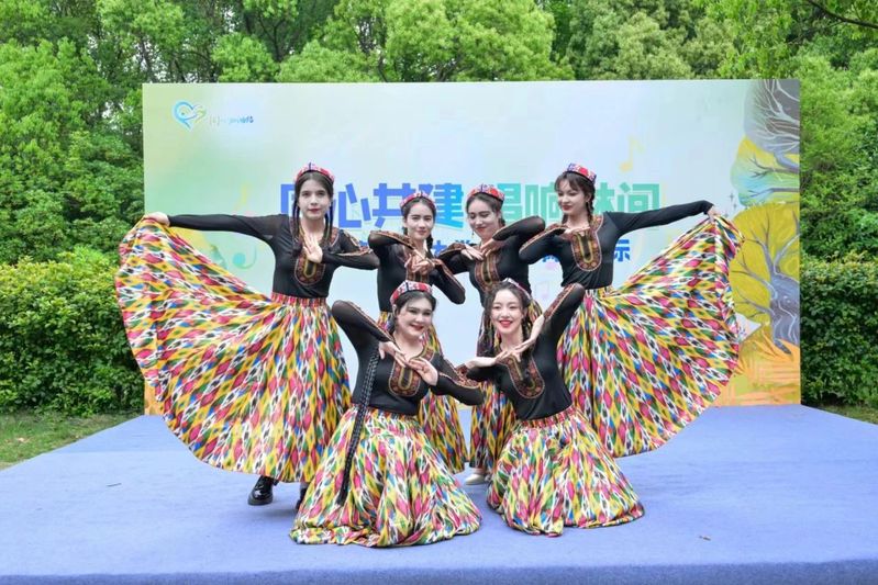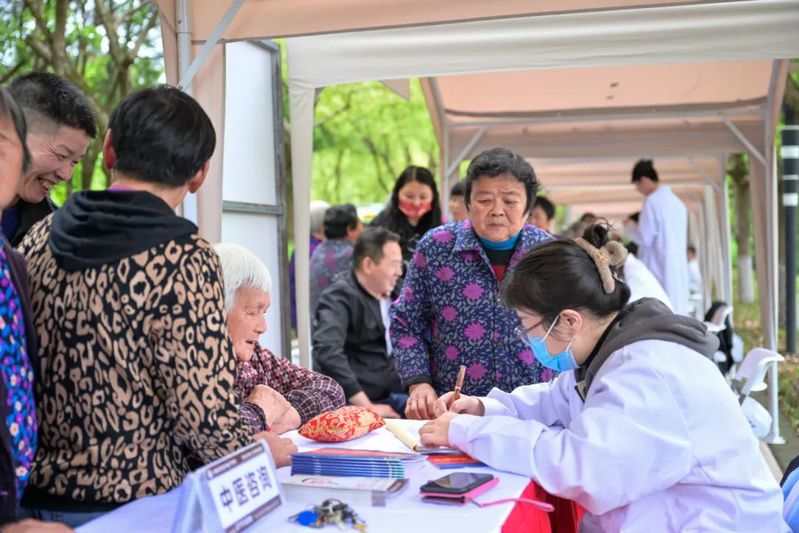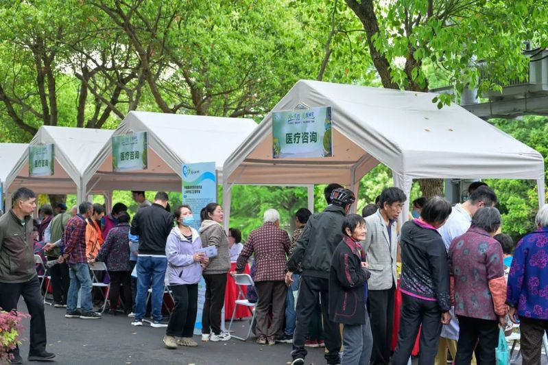 场外的“同心服务日”项目充分发挥统一战线人才荟萃、智力密集、联系广泛的优势,搭起为民服务“连心桥”。来自各民主党派、无党派人士以及新阶层人士为村民群众提供义诊、义卖、政策宣讲等志愿服务。来自上海外国语大学的学生带来了民族舞蹈、民族乐器和多语种歌曲等特色文艺表演,会上播放了东方语学院师生拍摄制作、宣传朱定盘扣的多语种视频。