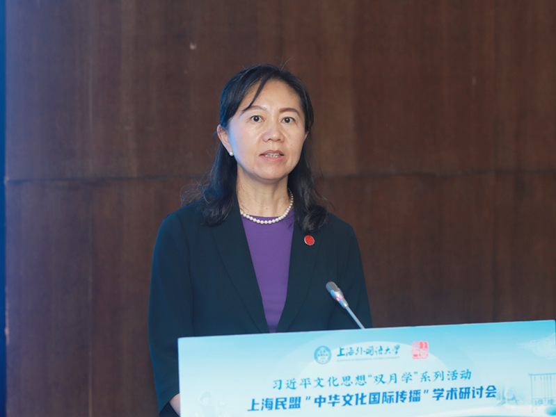 陈群表示,上海特有的文化资源,为我们深入学习贯彻习近平文化思想提供了丰厚的土壤。近年来,上海民盟着力打造文化品牌项目,聚焦文化事业、产业繁荣发展等方面积极建言履职。上海外国语大学在跨文化交流以及对外传播方面具有深厚的教研优势,为促进中外文化交流培养了许多优秀人才。此次联合举办研讨会,希望各位专家畅所欲言、集思广益,为进一步提升中华文化国际传播力贡献智慧;希望广大盟员开阔思路、明确责任,为国家和上海的文化事业发展作出新的贡献;希望上海民盟各级组织深入学习贯彻习近平文化思想,结合自身特色,深入开展调研,积极建言献策,助力上海加快打造习近平文化思想最佳实践地。