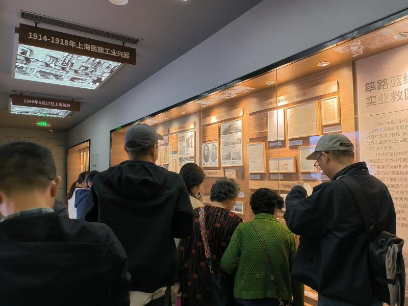 一楼展厅的老上海工业“清明上河图”多媒体长卷徐徐展开,大家跟着投影,从外白渡桥出发沿着苏州河溯流而上,饱览苏州河沿岸的重要建筑、工厂、航运以及道路风光。二楼模拟复原的改革开放初期工厂车间办公场景,生动再现了新中国成立后工业发展的崭新面貌,彰显了时代进步与变迁。进入新时代展区,互动元素丰富多彩,充分展现了上海坚持以人民为中心的发展理念,将苏州河两岸的老工业区成功转型为充满工业记忆的生态活力岸线。在展馆的尾声部分,一块充满科技感的机械屏播放着短片《2035·苏河水岸》,展望着苏州河畔在2035年更加璀璨美好的未来,也引发了大家对城市发展建设与历史文化遗产之间的关系有了更深入的思考。