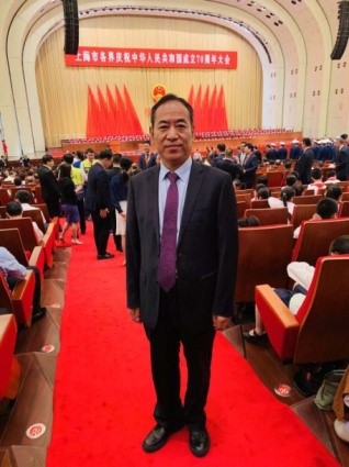 2019年9月30日上午,上海市各界庆祝中华人民共和国成立70周年大会在世博中心隆重举行。中共上海市委书记李强发表讲话,市委副书记、市长应勇主持大会。市委、市政府、市人大、市政协领导同志,市监察委员会、市高级人民法院、市人民检察院负责同志,本市部分老同志,驻沪人民解放军和武警部队负责同志,市各部委办局、各区以及各人民团体负责人,部分中央在沪单位负责人,获颁“庆祝中华人民共和国成立70周年”纪念章代表,先进模范代表以及社会各界代表出席大会。上海市政协委员、上外中东研究所教授、知联会会员丁俊受邀出席庆祝大会。