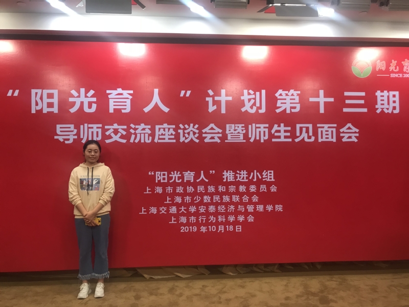 “阳光育人”计划是由市政协民族和宗教委员会、市少数民族联合会、上海交通大学安泰经济与管理学院、上海市行为科学学会等共同发起的一项公益活动,于2007年启动,至今已有13年,旨在帮助上海高校在校少数民族优秀贫困生顺利完成学业、实现美好人生、顺利发展的公益性活动。“阳光育人”计划已成为上海民族工作的特色品牌之一,共帮助近300余位少数民族大学生成长,同时也推动了他们从单纯的受助者,将主动作为的公益人的转变,通过年复一年的传递,让“阳光”照进了更多的少数民族大学生心里,给他们的学习生涯及人生道路带来了温暖与激励。